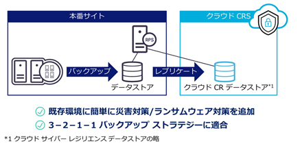 バックアップ対象のデータをCRSをインストールしたサーバーに直接バックアップすることでランサムウエア対策を強化。