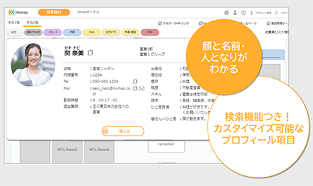 内線番号、メールアドレス、携帯番号、スケジュール等散らばった情報を一元管理 - 顔写真付きのプロフィール機能でコミュニケーションを活性化