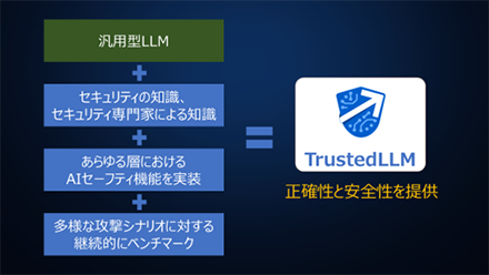 AIの出力を検証・補正するTrusted LLMレイヤーを搭載し、誤検知や情報漏えいのリスクを低減します。